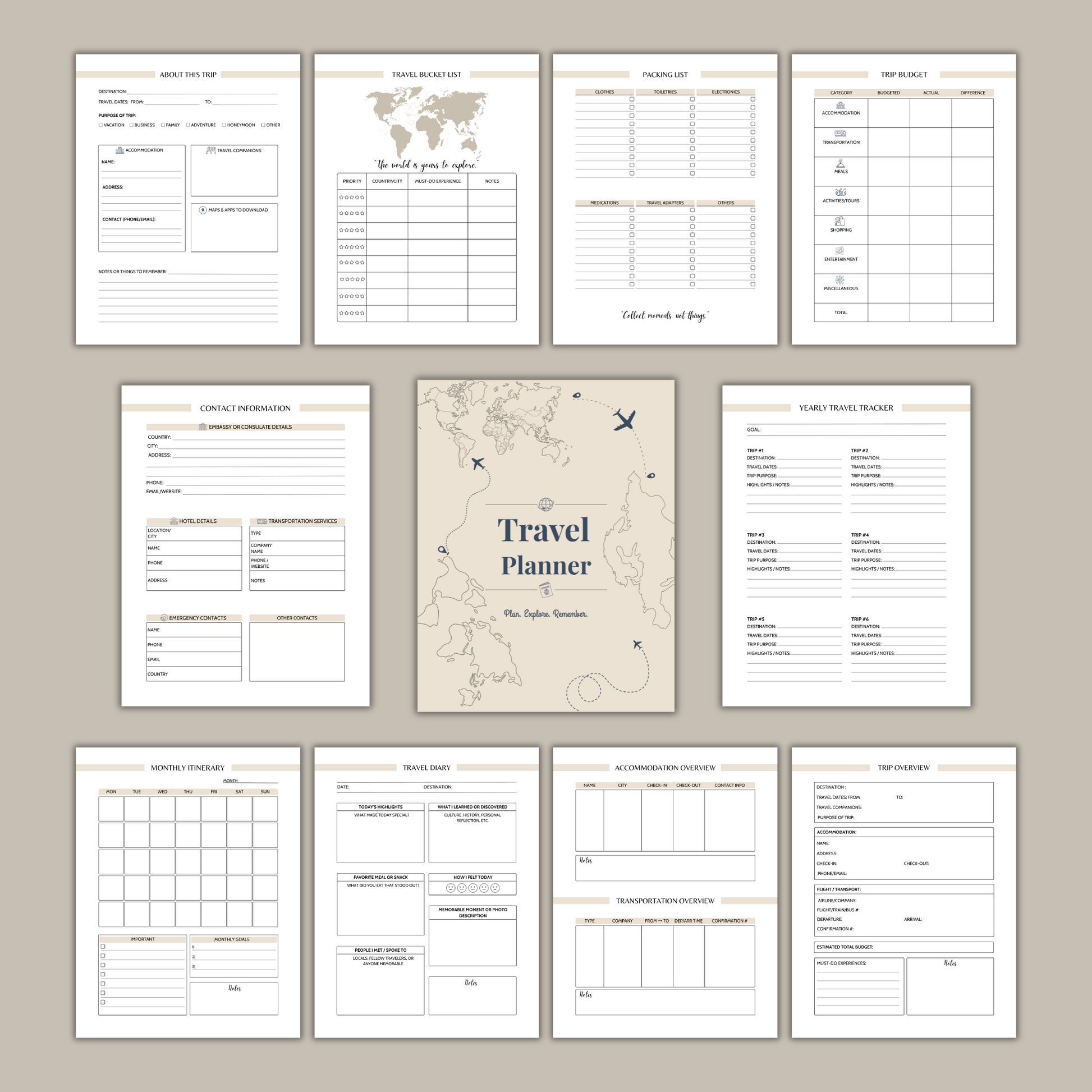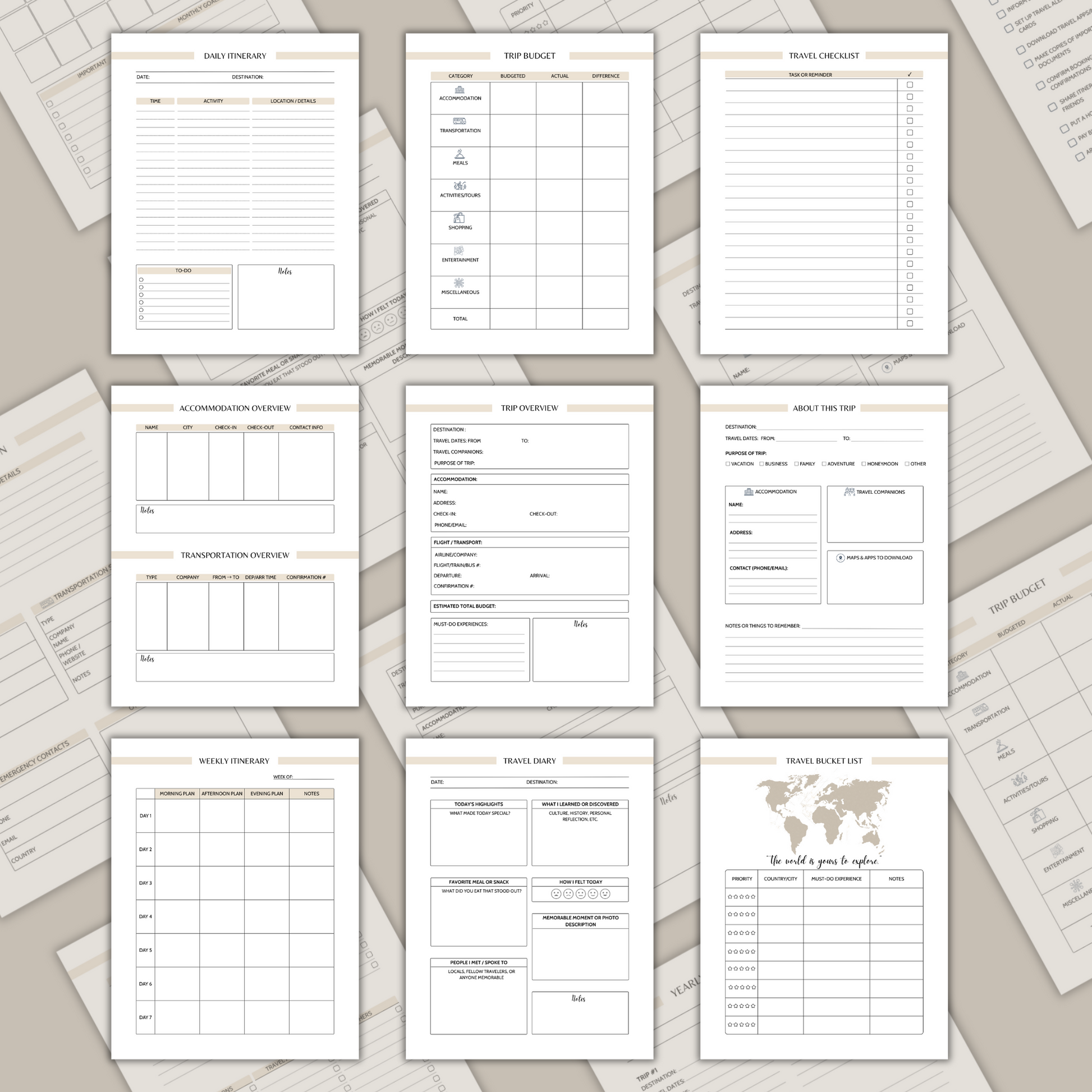 Plan your next adventure with ease using this beautifully designed Printable Travel Planner! This all-in-one planner helps you organize every detail of your trip—from packing lists and budgeting to daily itineraries and must-visit spots. Whether you’re embarking on a solo trip, family vacation, or romantic getaway, this planner is your ideal travel companion.